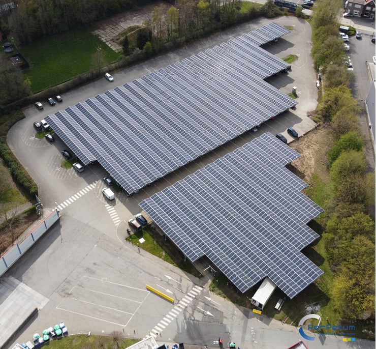 Pour ce projet de carport de 1,19 MWp en Belgique, nous avons fourni une structure est-ouest, aussi appelée Canopy.