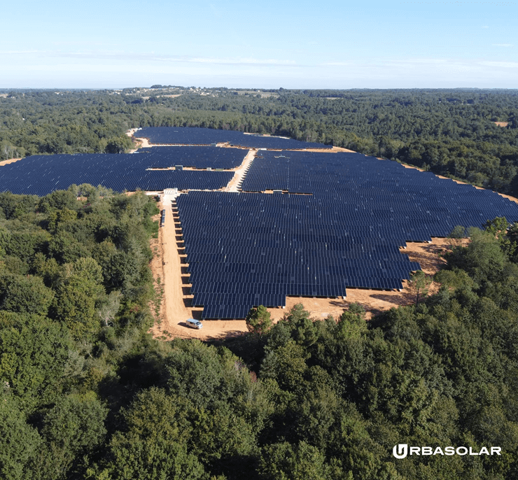 Pour ce chantier de 14 MWc en France, nous avons fourni une structure basée sur des pieds rotulés sur longrines.